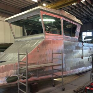 Alu­mi­ni­um wheel­hou­se for a fire­figh­ting vessel.