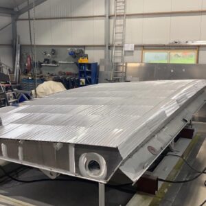 For the world famous Roy­al Hak­voort Shi­py­ard we built a alu­mi­ni­um transom­door for the­re yacht YN252